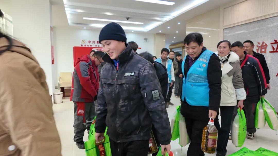 慰问现场气氛温馨热烈。一份份米、油等生活物资递到大家手中,传递着党和政府的深切关怀,也凝聚了人心、温暖了民心。