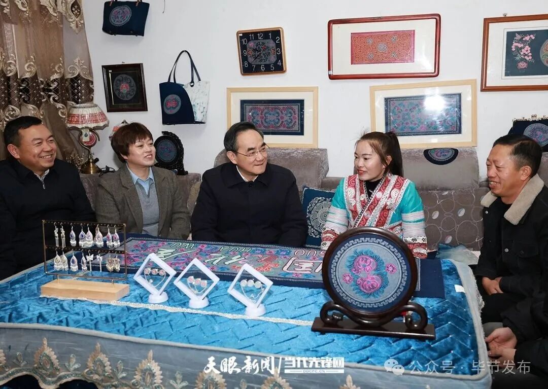 乌蒙深处年味正浓。习近平总书记2021年2月3日亲临黔西市新仁乡化屋村考察,亲切看望慰问各族干部群众,充分体现人民领袖爱人民、人民领袖人民爱。在领袖关心关怀下,化屋村“十四五”时期展现新变化新面貌新气象。徐麟来到化屋村,察看村容村貌,调研苗绣生产车间,走进赵玉学等村民家中交谈,勉励乡亲们牢记嘱托、感恩奋进,在“十五五”时期让产业更兴旺、环境更美丽、生活更红火,叮嘱守正创新保护传承民族传统文化,扎实推进移风易俗、培育文明新风。在村委会,化屋干部群众深情重温习近平总书记考察时的幸福时刻,徐麟深情讲述总书记考察肇兴侗寨时的感人场景,共同体悟总书记谆谆教诲。徐麟说,五年来极不平凡的历程再次充分证明,什么时候把习近平总书记重要讲话重要指示精神学习得越好、理解得越深、贯彻得越有力,发展成效就越显著。迈步新征程,全省上下要坚定沿着习近平总书记指引的方向奋勇前进,坚持以高质量发展统揽全局,奋力在中国式现代化进程中展现贵州新风采。